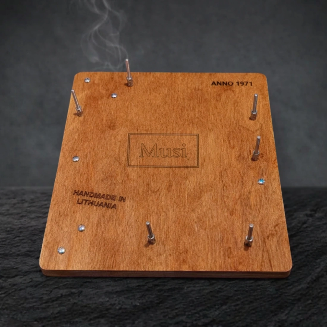 Grafino, taurių, daugkartinių šaldymo kauliukų bei cigaro rinkinys rankų darbo, degintos medienos lagamine. Kaip ir visus mūsų gaminius šį rinkinį galime personalizuoti norimu tekstu, logotipu ar paveikslėliu. Norimą personalizavimą ar pristatymo terminus galime suderinti info@musibrand.eu